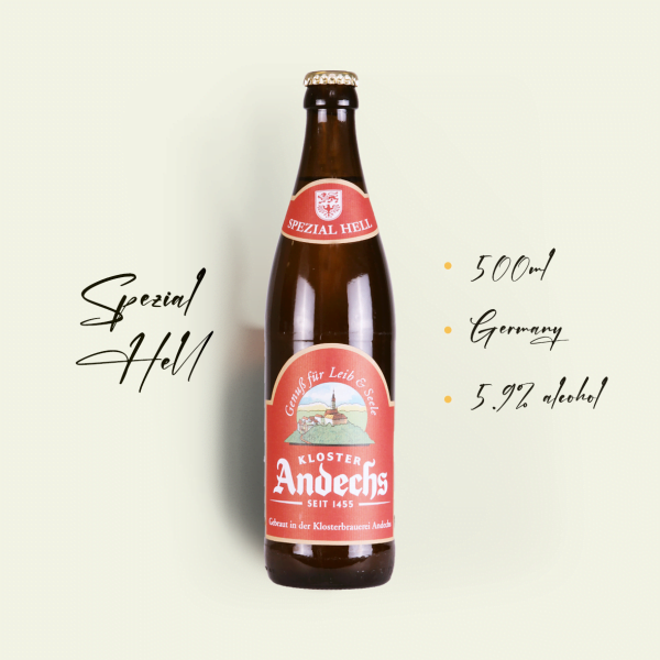 Spezial Hell is pleasantly tangy with a full, round malt flavour. The soft taste is marked by balanced sweetness and hop bitterness nuances.