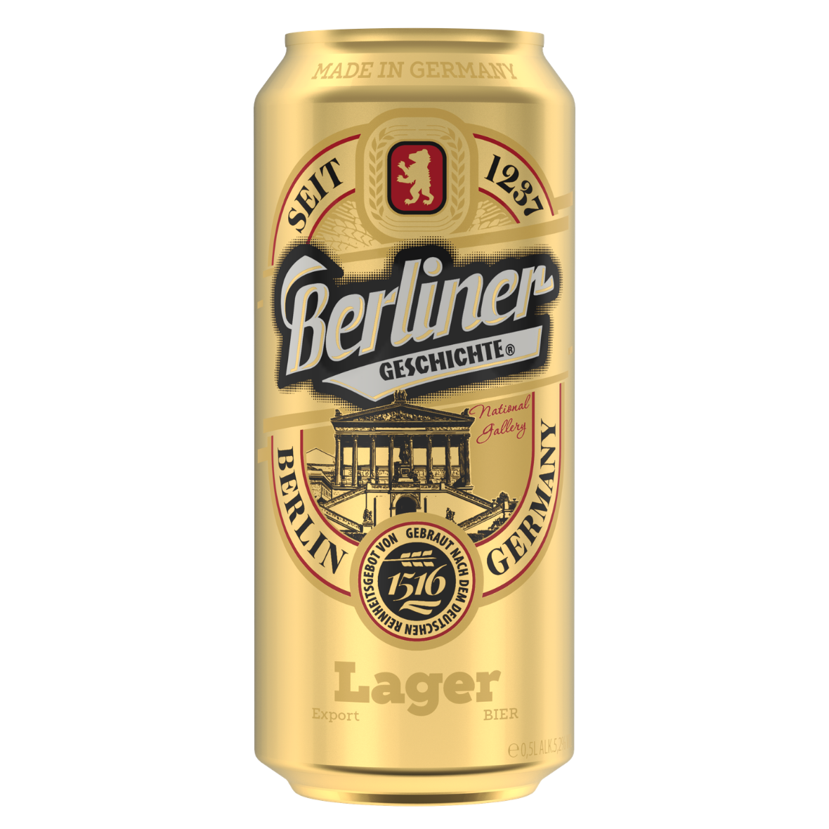 Germany’s classic Export Lager, Berliner Geschichte Lager (Export), features a bright golden color and a well-balanced, smooth character. It opens with gentle malty aromas, complemented by subtle floral hop notes and a clean, refreshing profile.